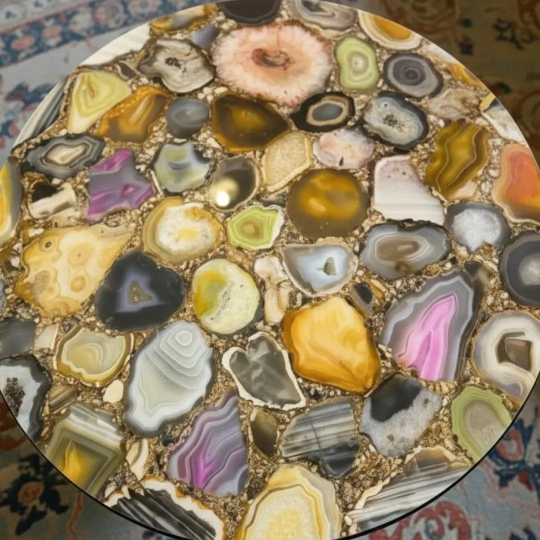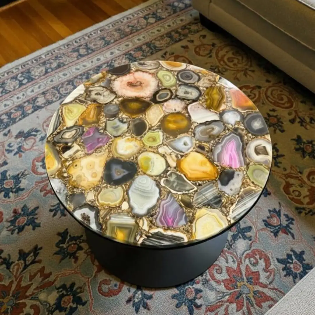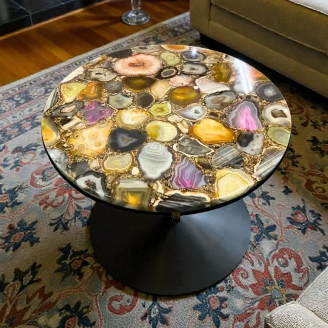 A luxurious agate table featuring natural stone patterns, perfect for premium interiors and statement décor.