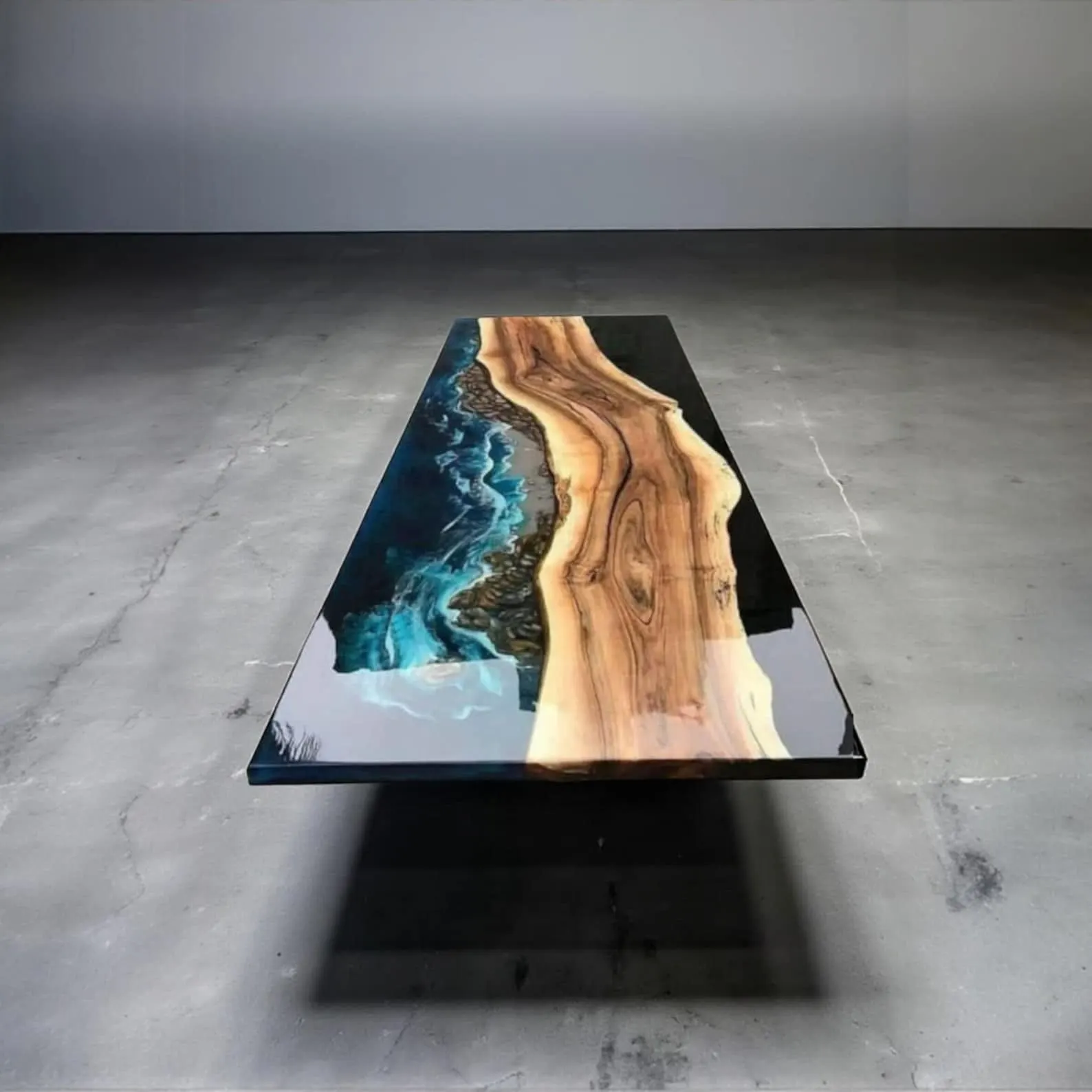 A stylish rectangular epoxy table crafted for dining and workspace use, combining durability with modern aesthetics.