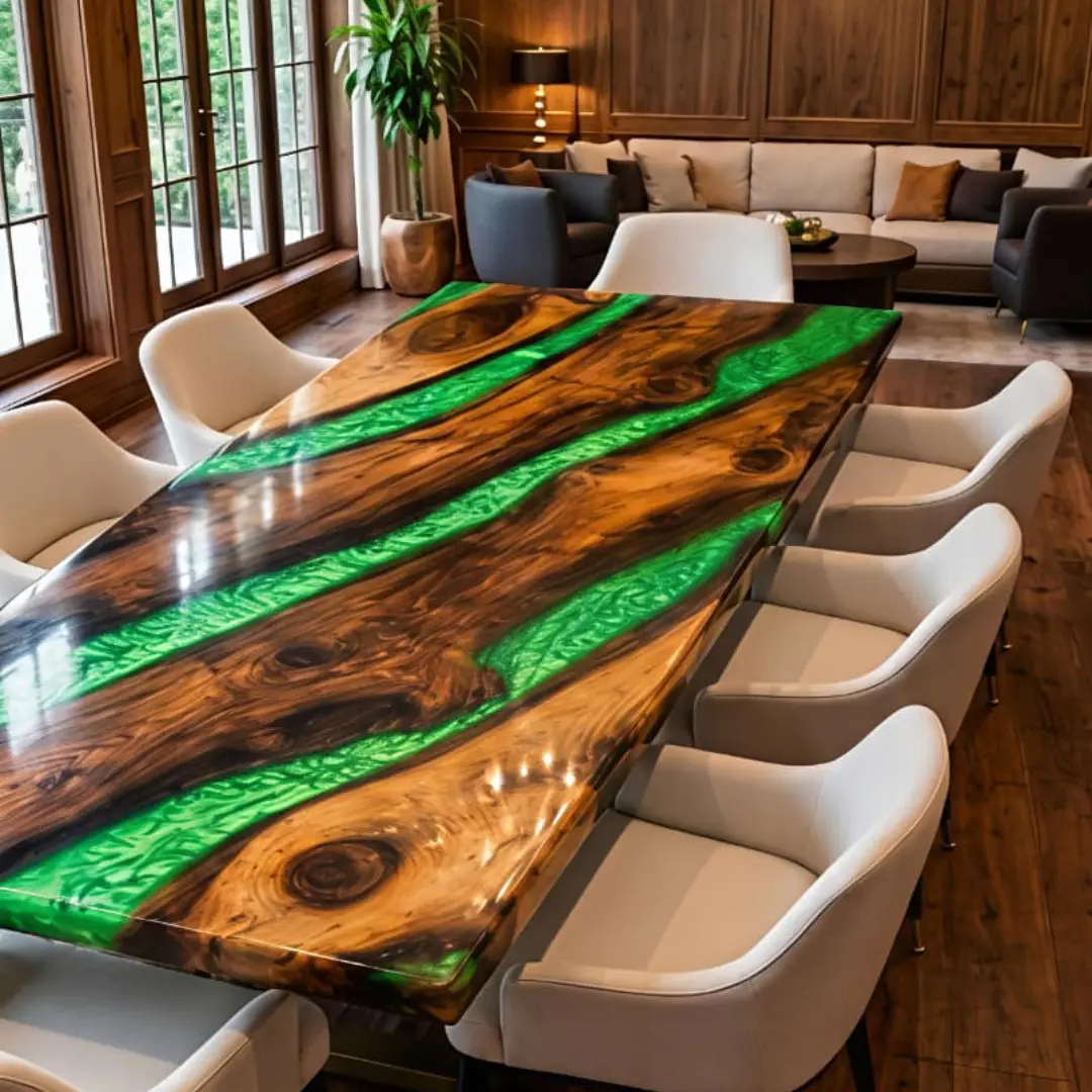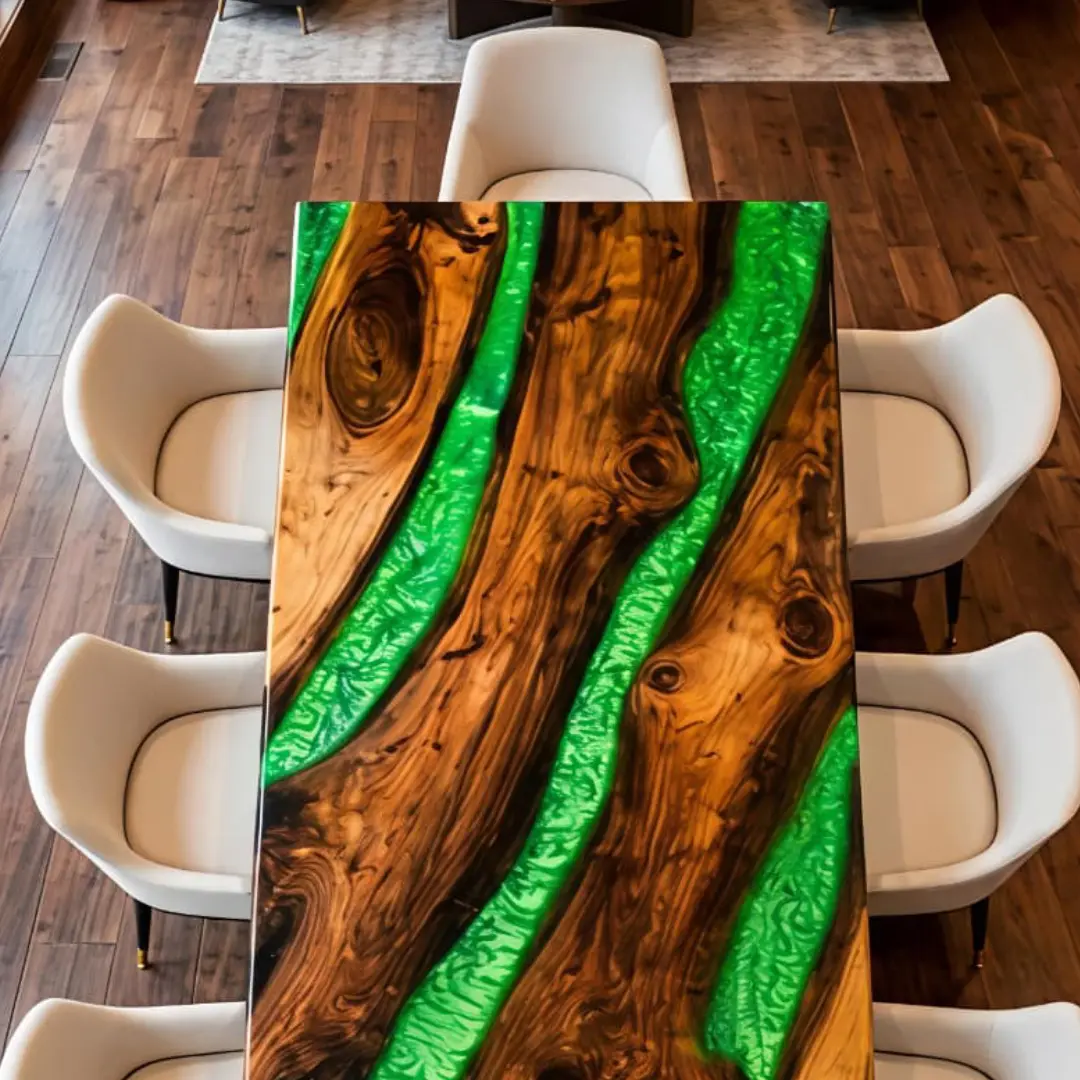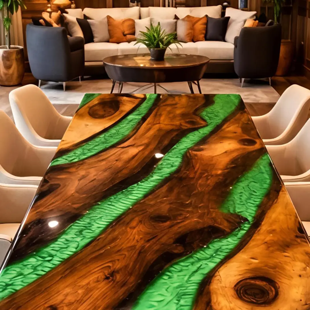 A stylish rectangular epoxy table crafted for dining and workspace use, combining durability with modern aesthetics.