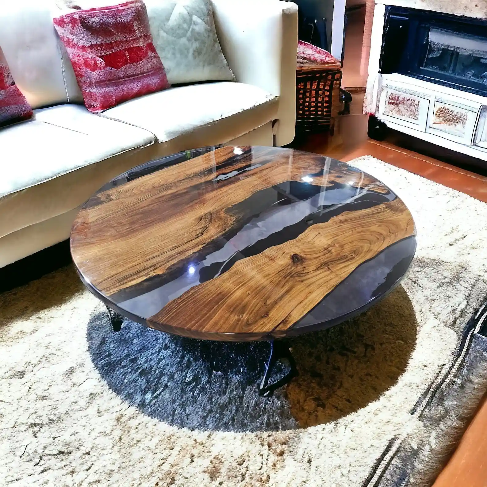 The smooth, glossy epoxy finish enhances the natural grain of the wood while adding durability and resistance to daily wear. Its round shape makes it perfect for cozy gatherings, coffee corners, or statement décor in living rooms.