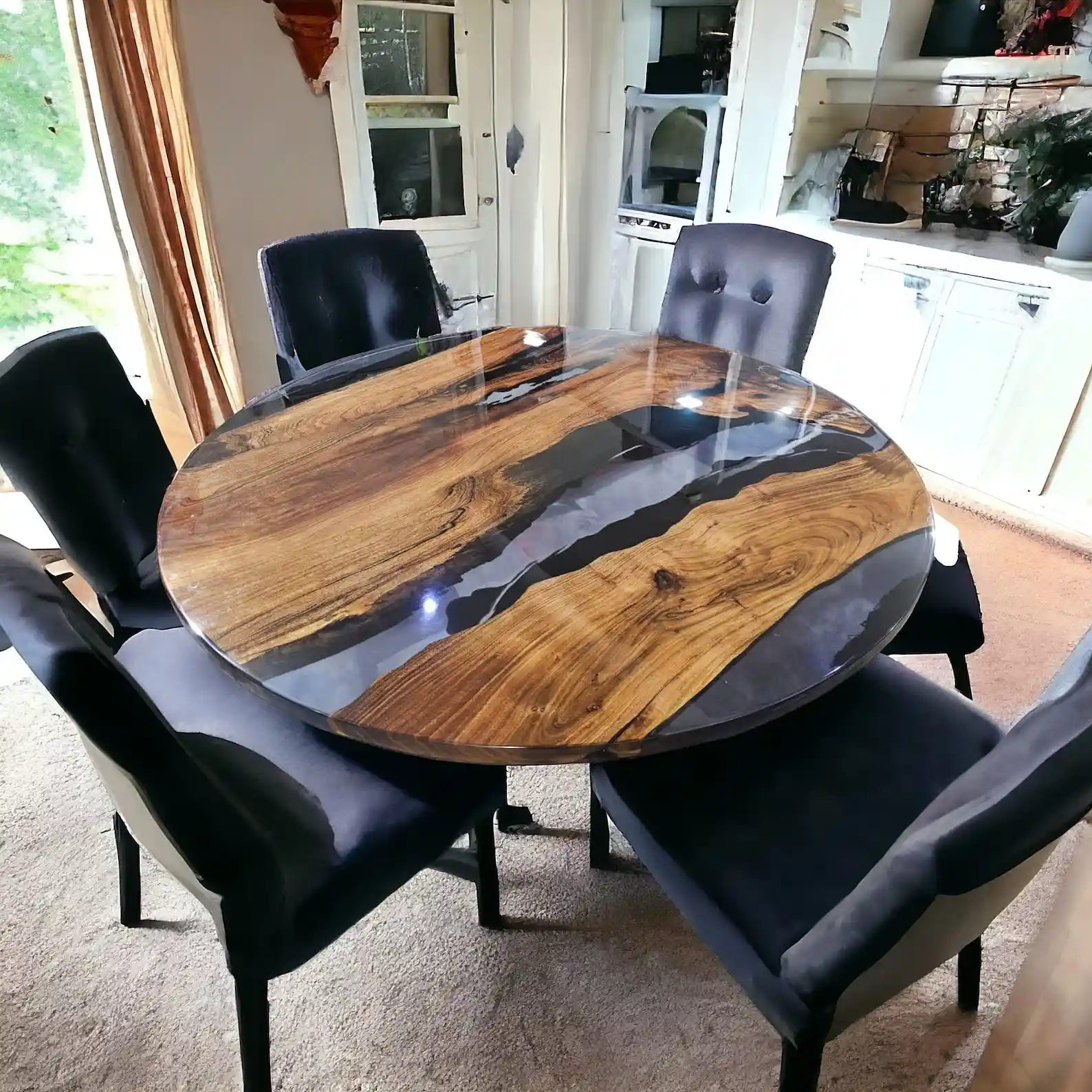 A beautifully handcrafted round epoxy table that blends natural wood with premium resin, creating a stunning centerpiece for modern and luxury interiors.