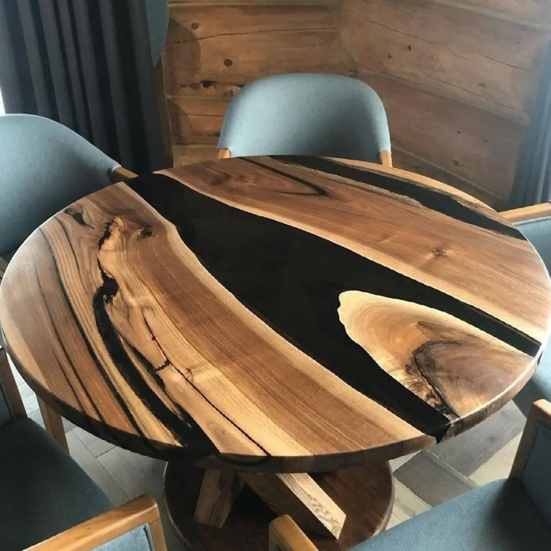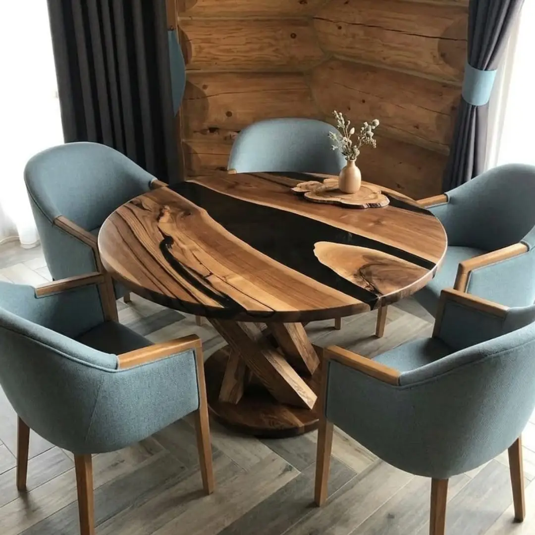 A beautifully handcrafted round epoxy table that blends natural wood with premium resin, creating a stunning centerpiece for modern and luxury interiors.