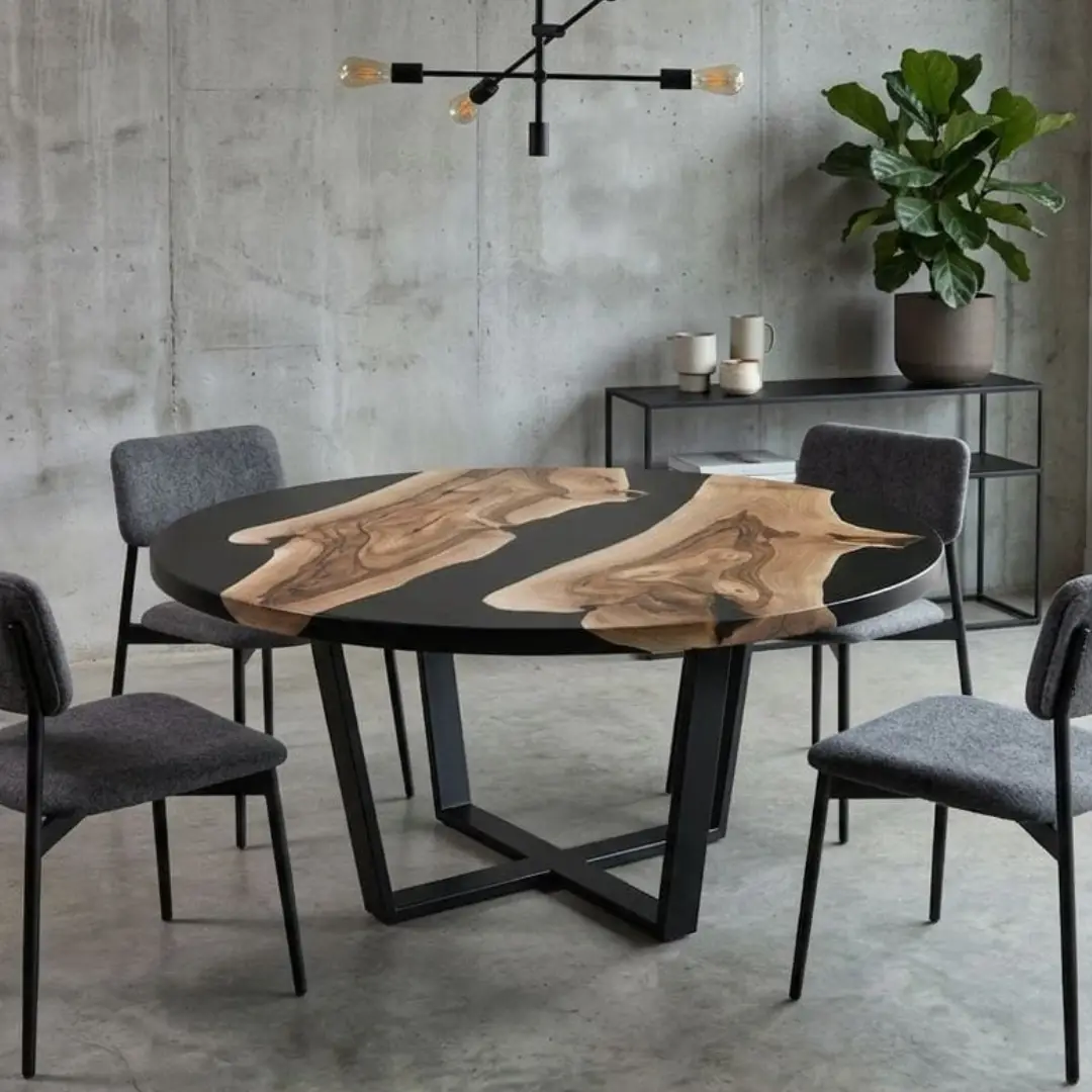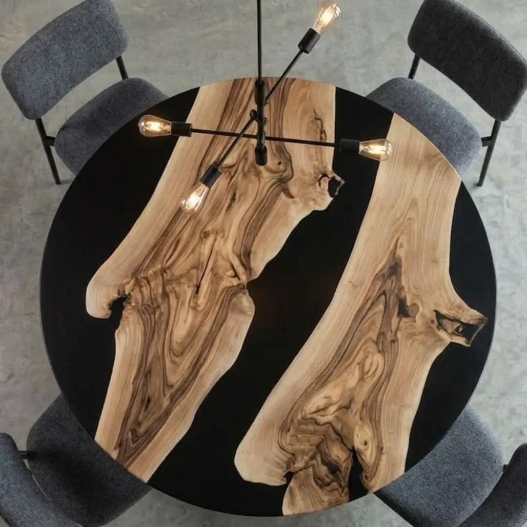 A beautifully handcrafted round epoxy table that blends natural wood with premium resin, creating a stunning centerpiece for modern and luxury interiors.